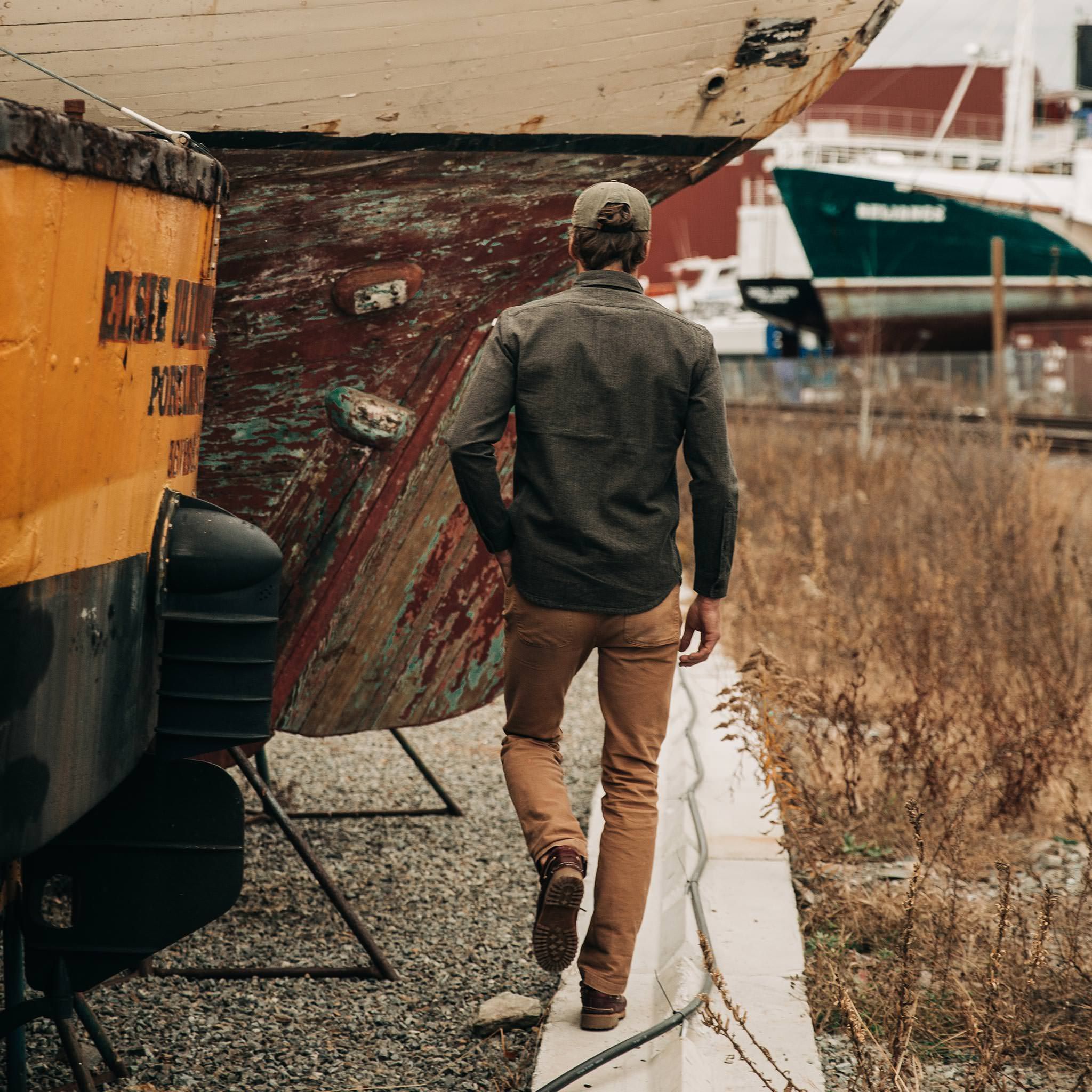 The Mechanic Shirt in Dark Olive Herringbone from Taylor Stitch