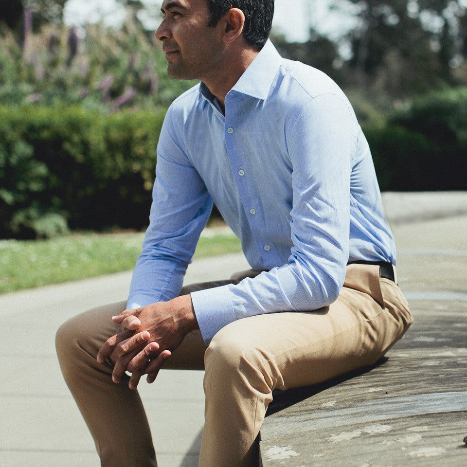 - Crisp semi-spread collar