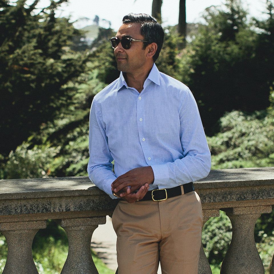 - European Milled 55% linen 45% cotton shirting.