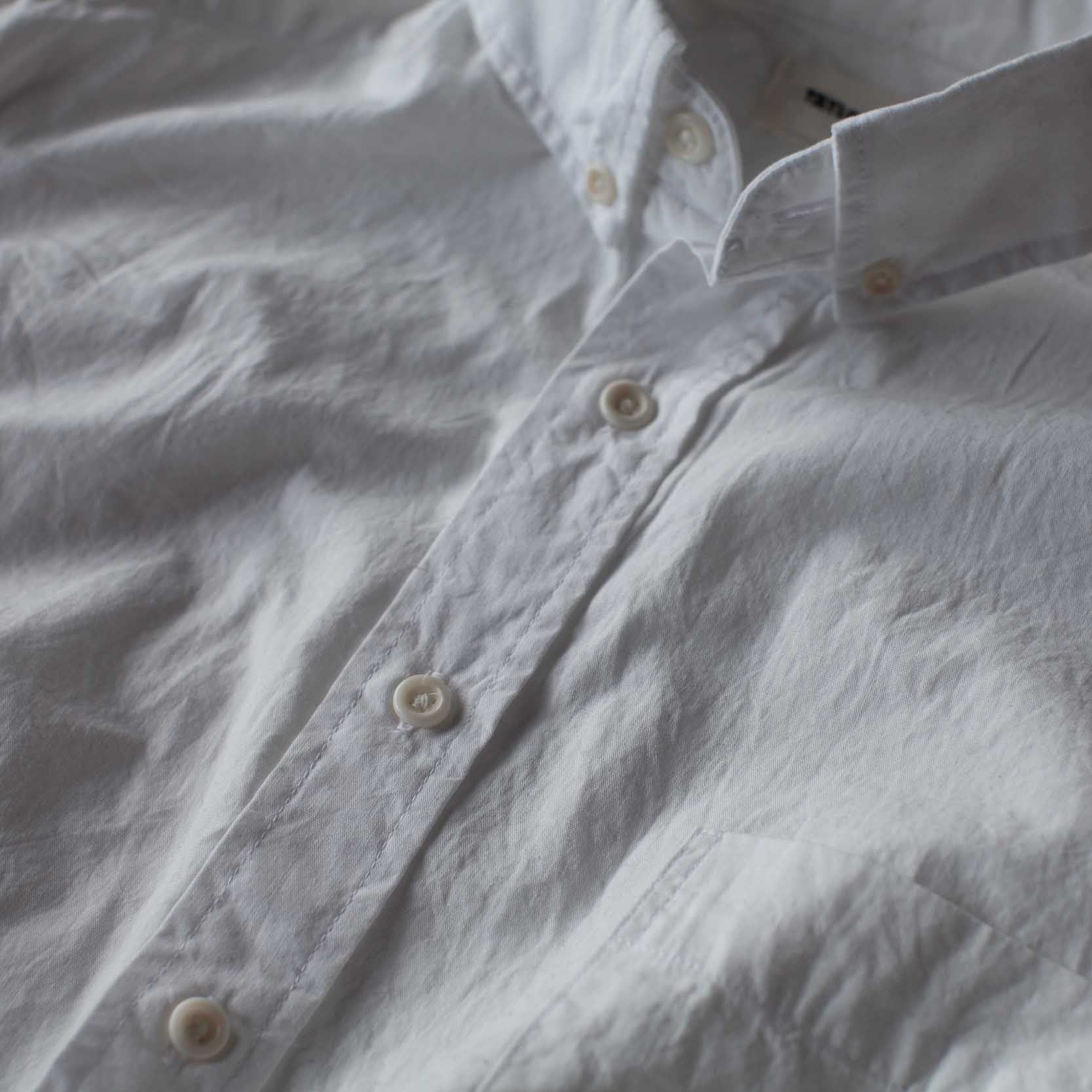 Our staple shirt has a tailored fit with a triple button collar. Now our oxford is available in short sleeves in White. Shop In-Stock now.