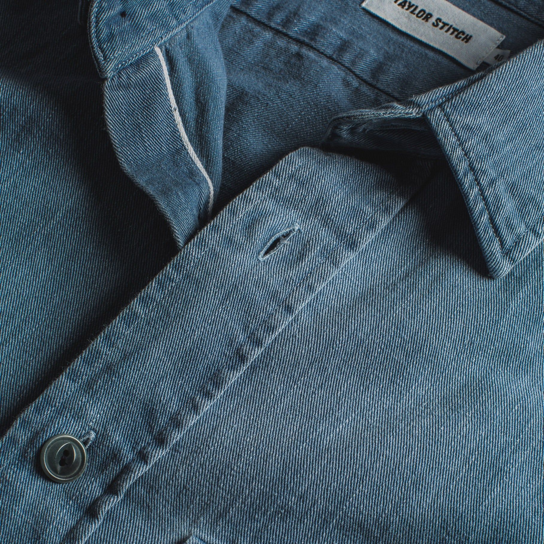 - Selvage detailing on inside right placket and inside of cuffs.