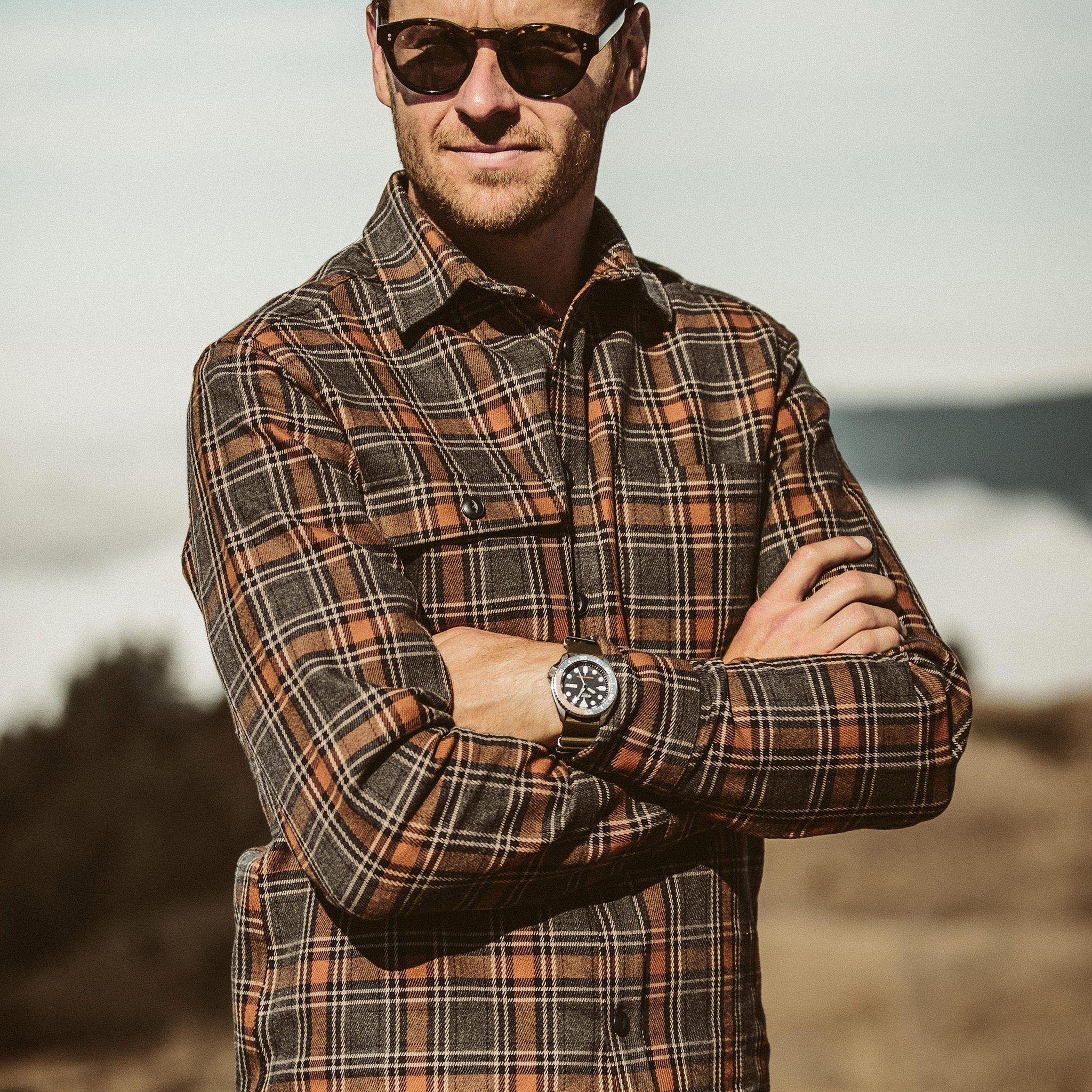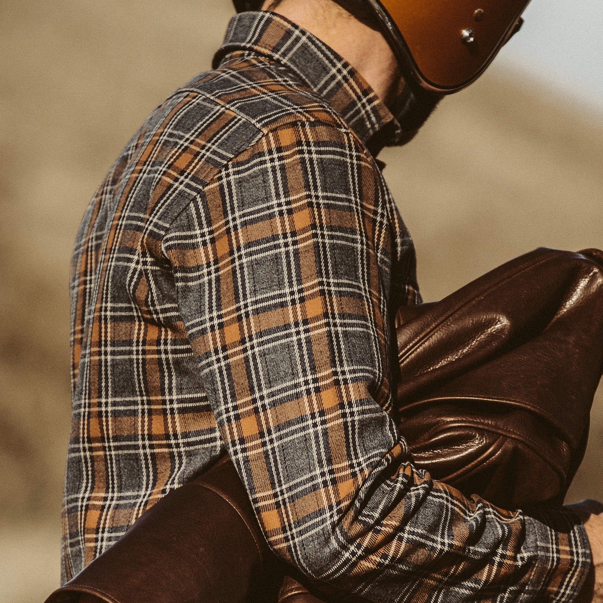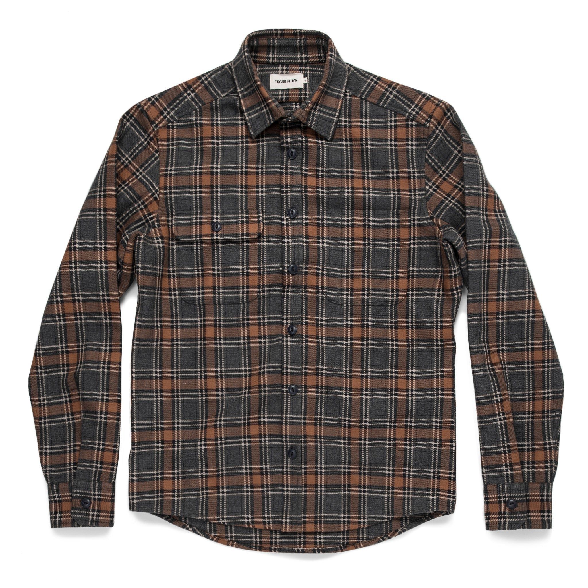 The Moto Utility Shirt in Charcoal & Rust Plaid from Taylor Stitch.