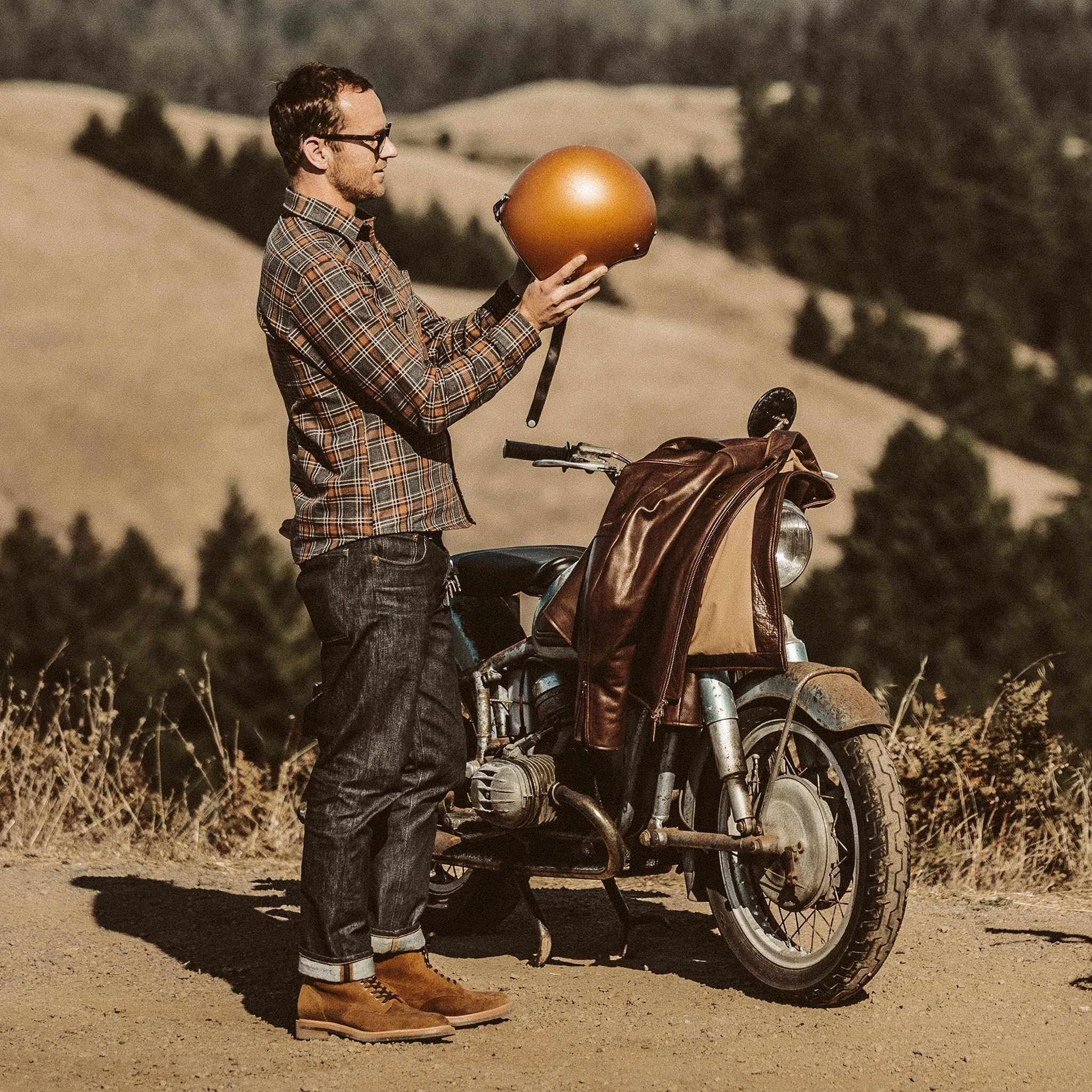 The Moto Utility Shirt in Charcoal & Rust Plaid