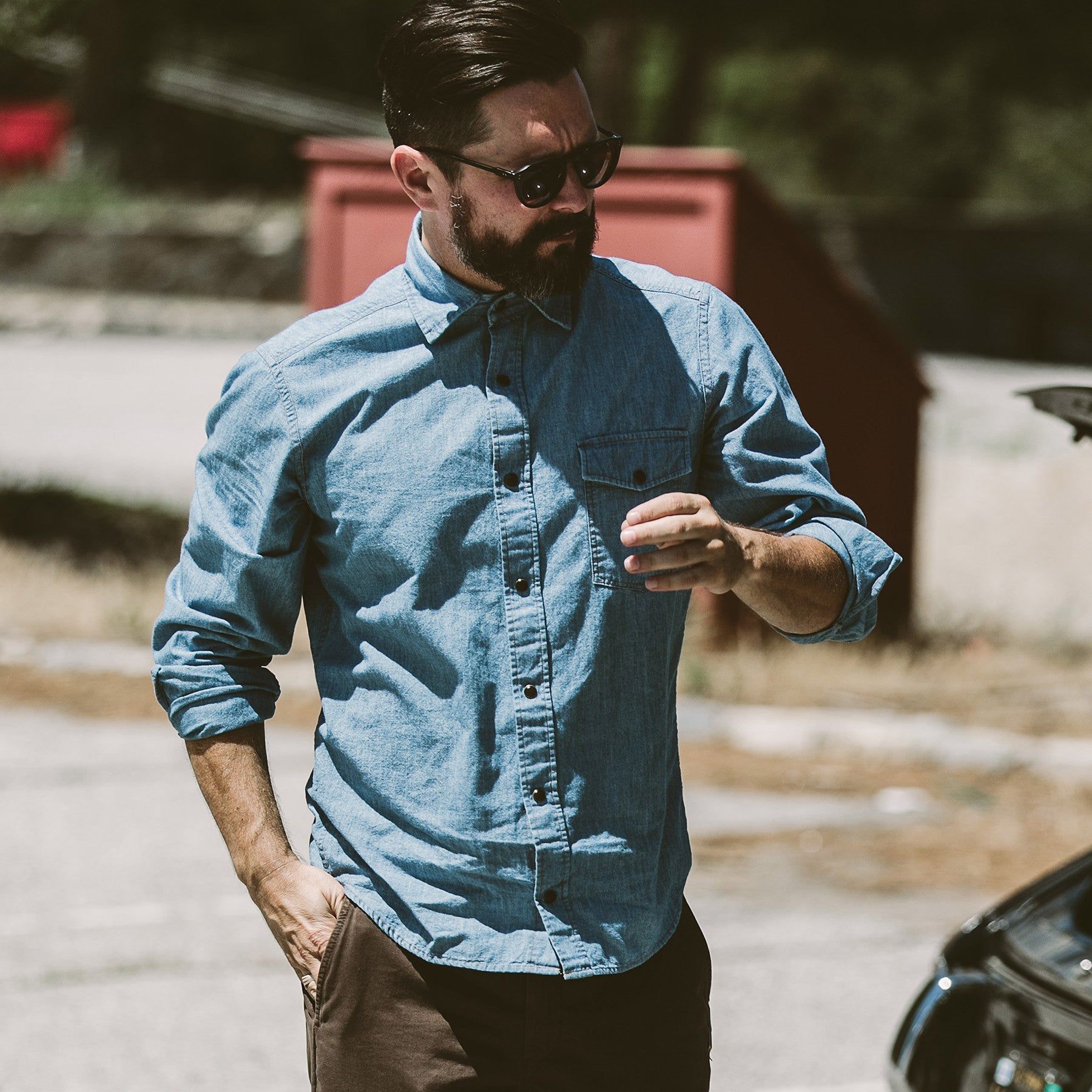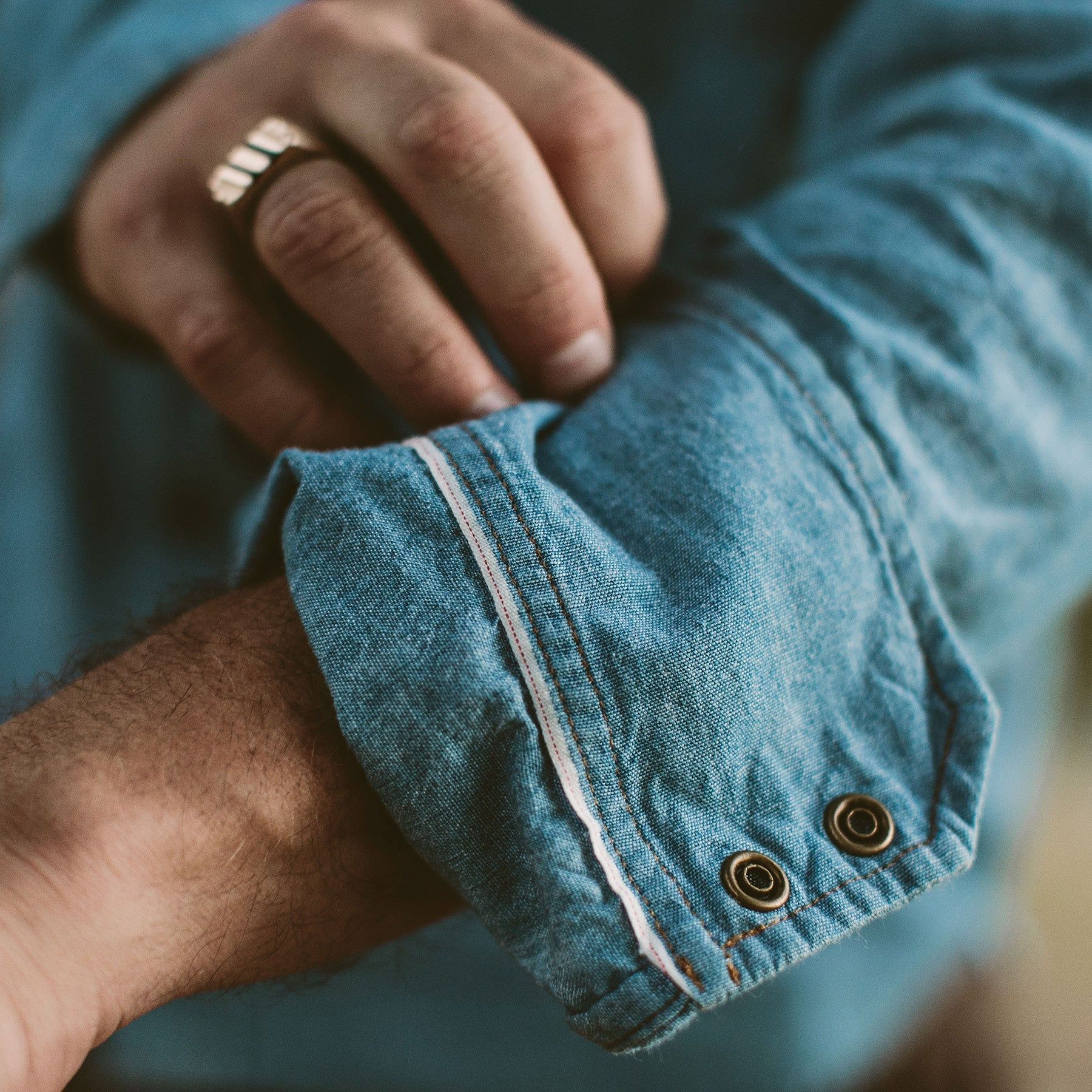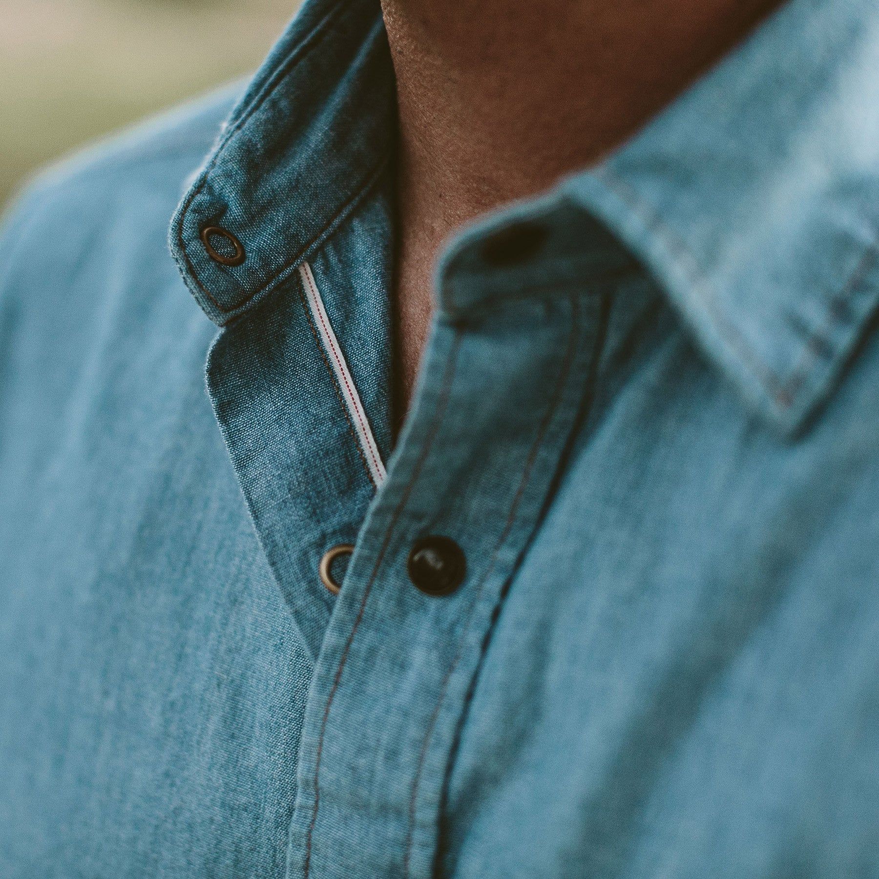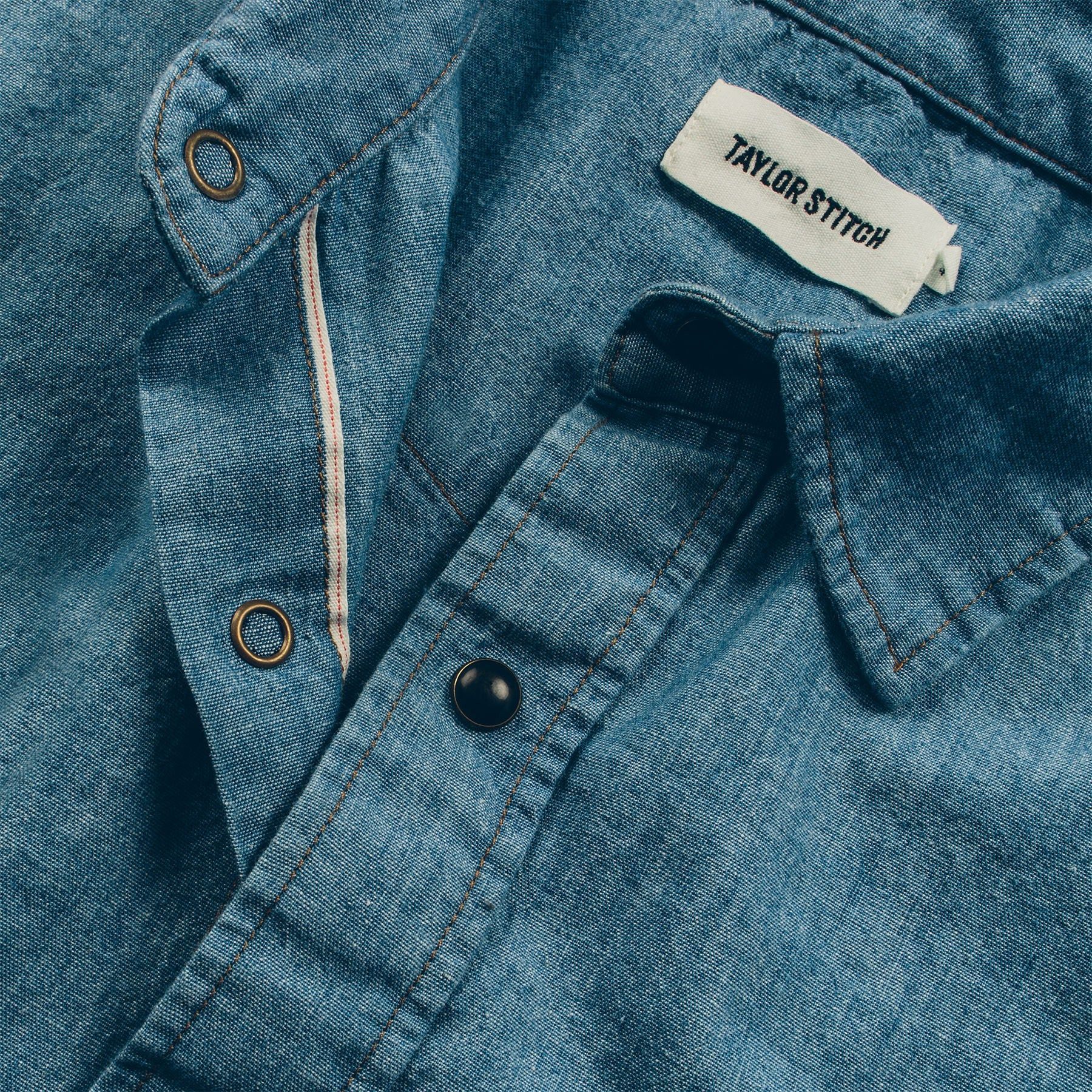 - 7-oz. 100% cotton Japanese selvage chambray.