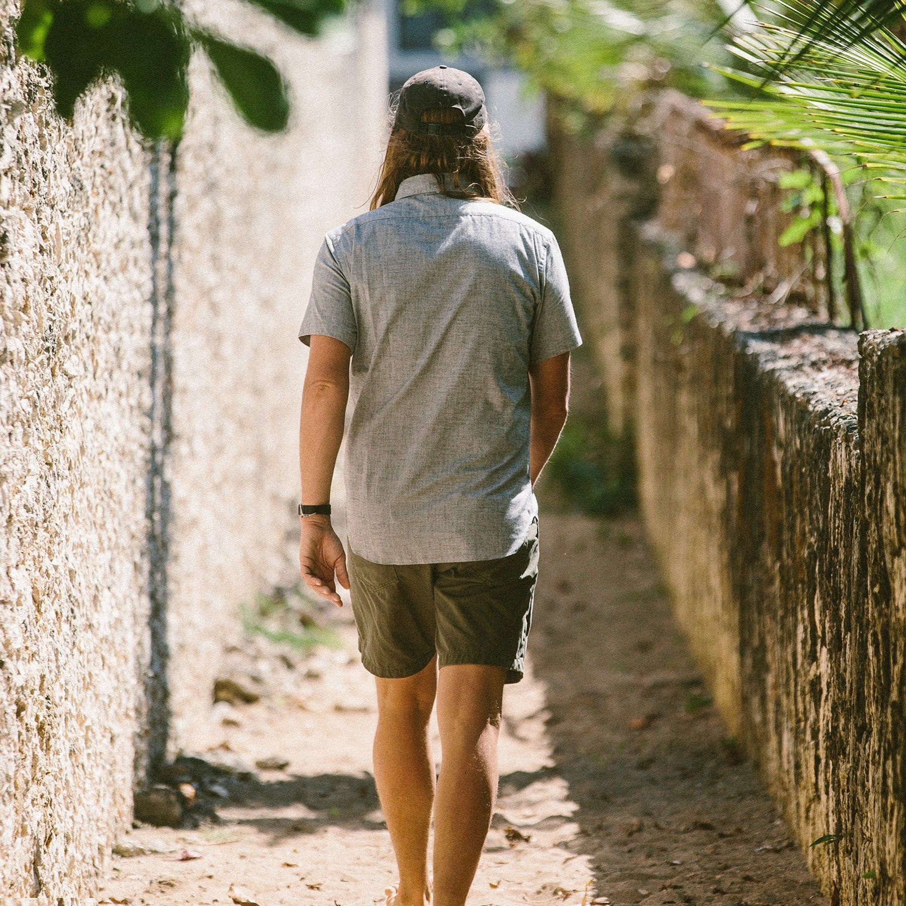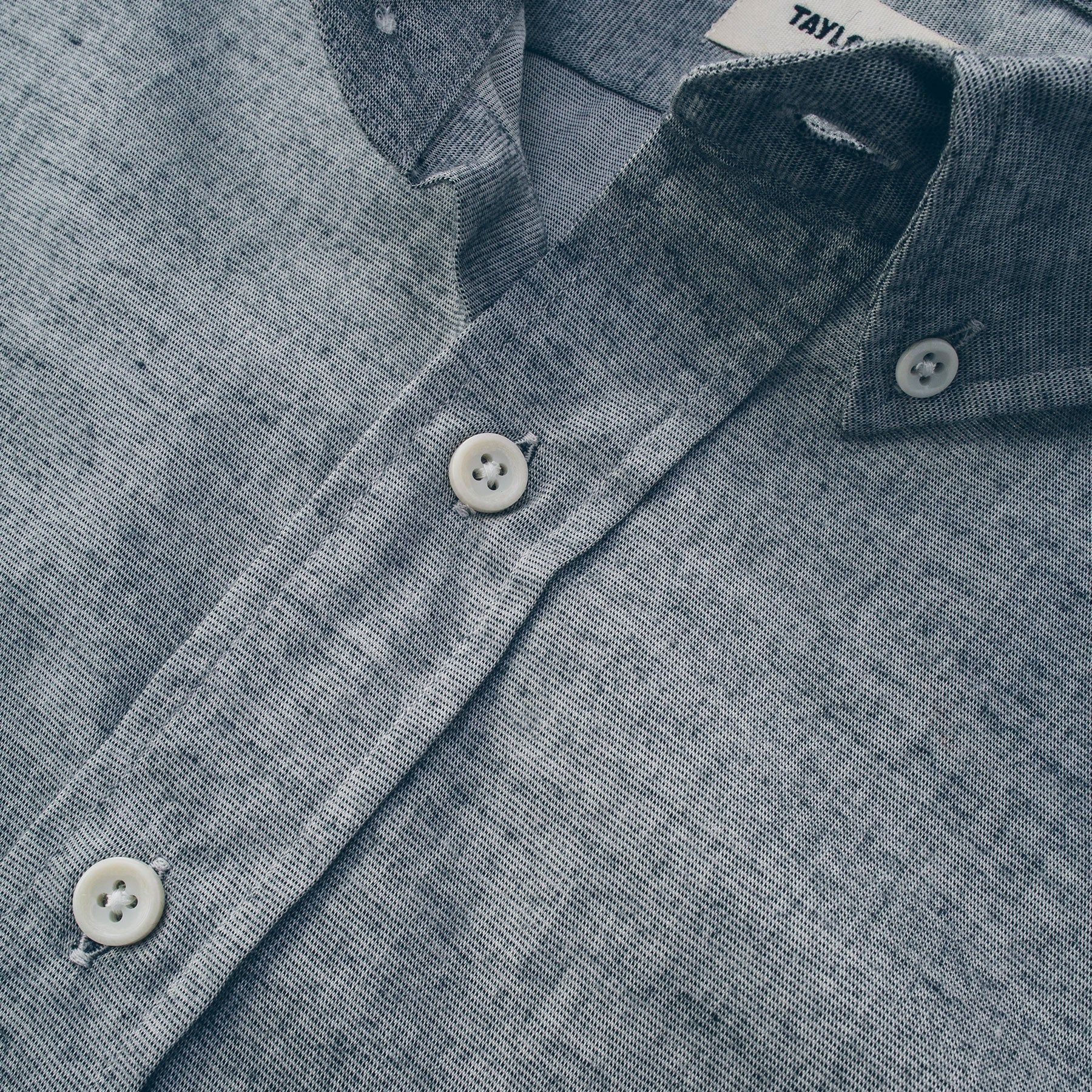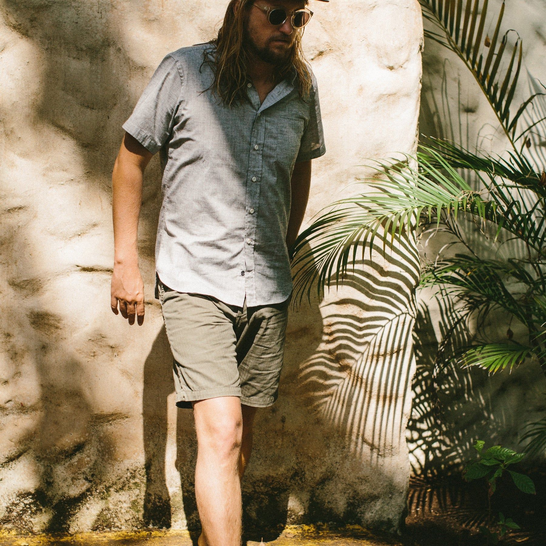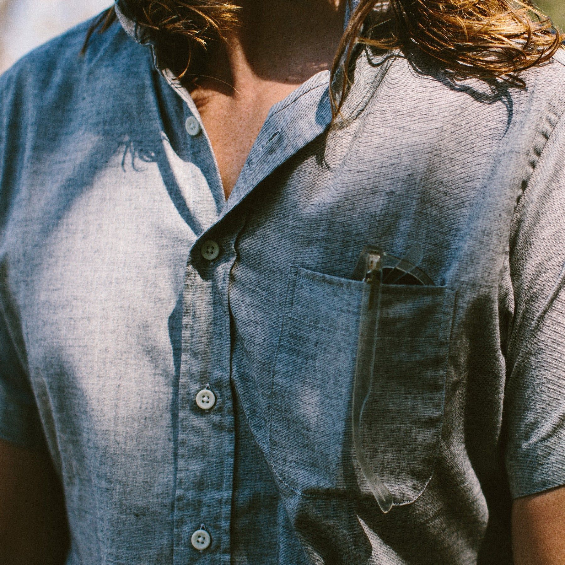 Our staple shirt has a tailored fit with a triple button collar. Now our oxford is available in short sleeves in Steel Chambray. Shop In-Stock now.