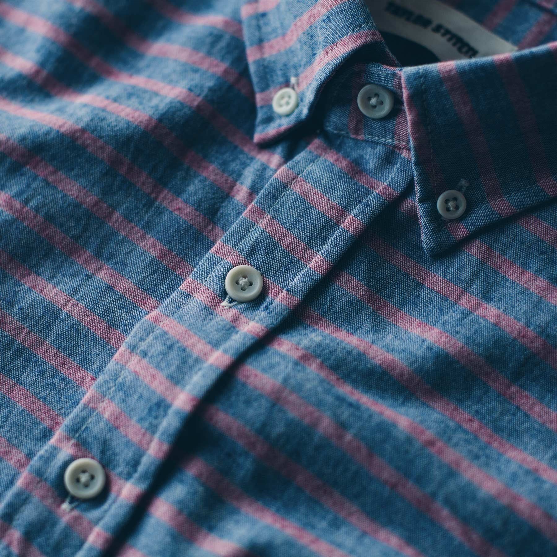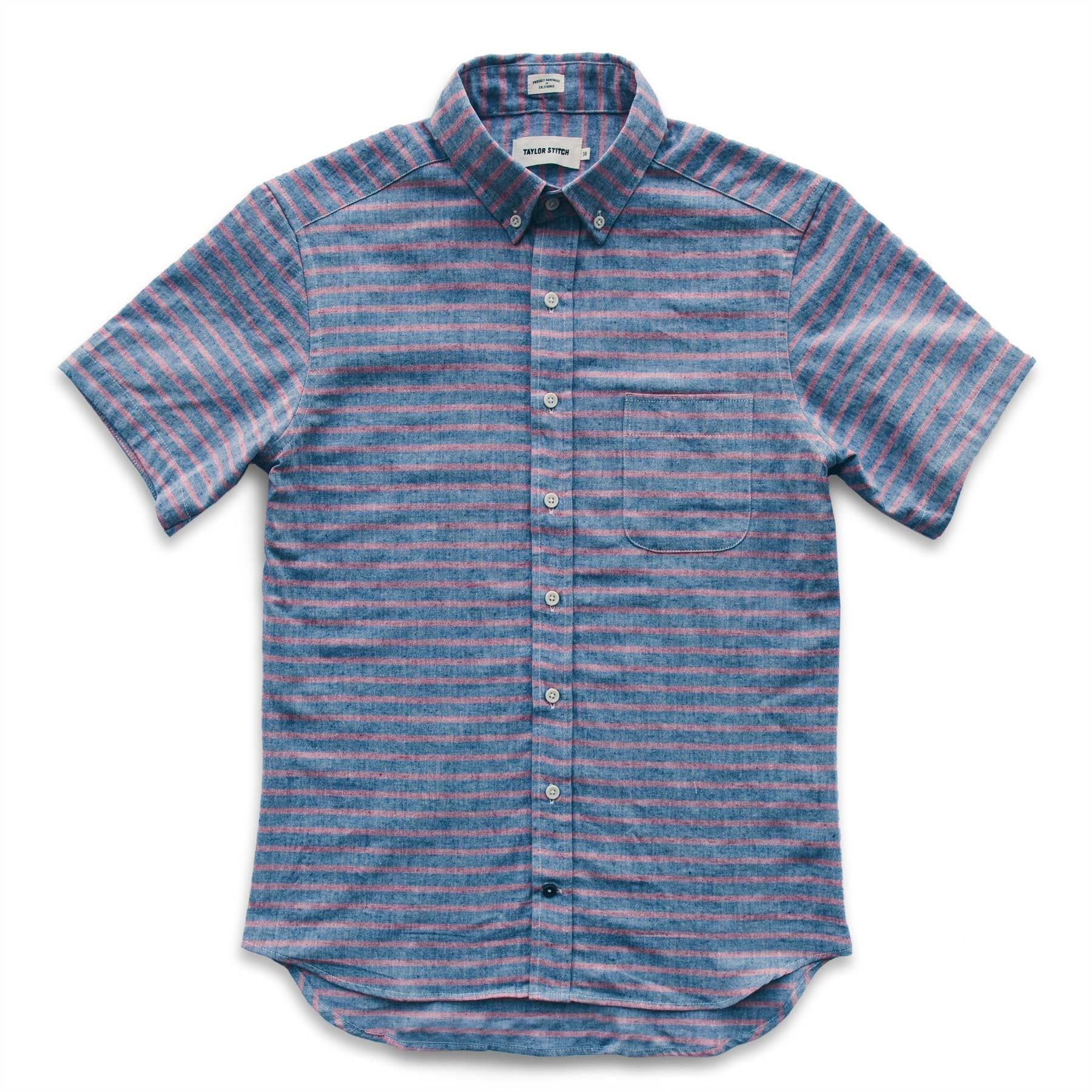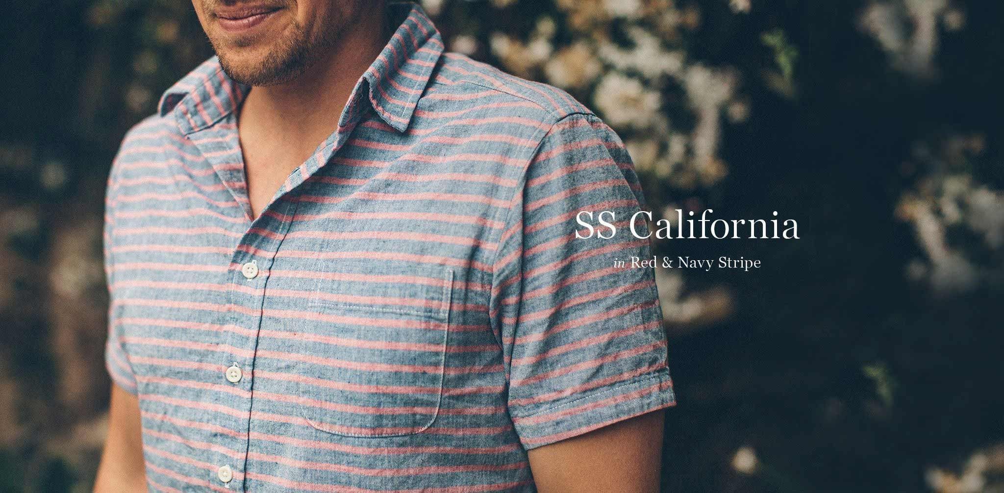 Our staple shirt has a tailored fit with a triple button collar. Now our oxford is available in short sleeves with Red and Navy stripes. Shop In-Stock now.