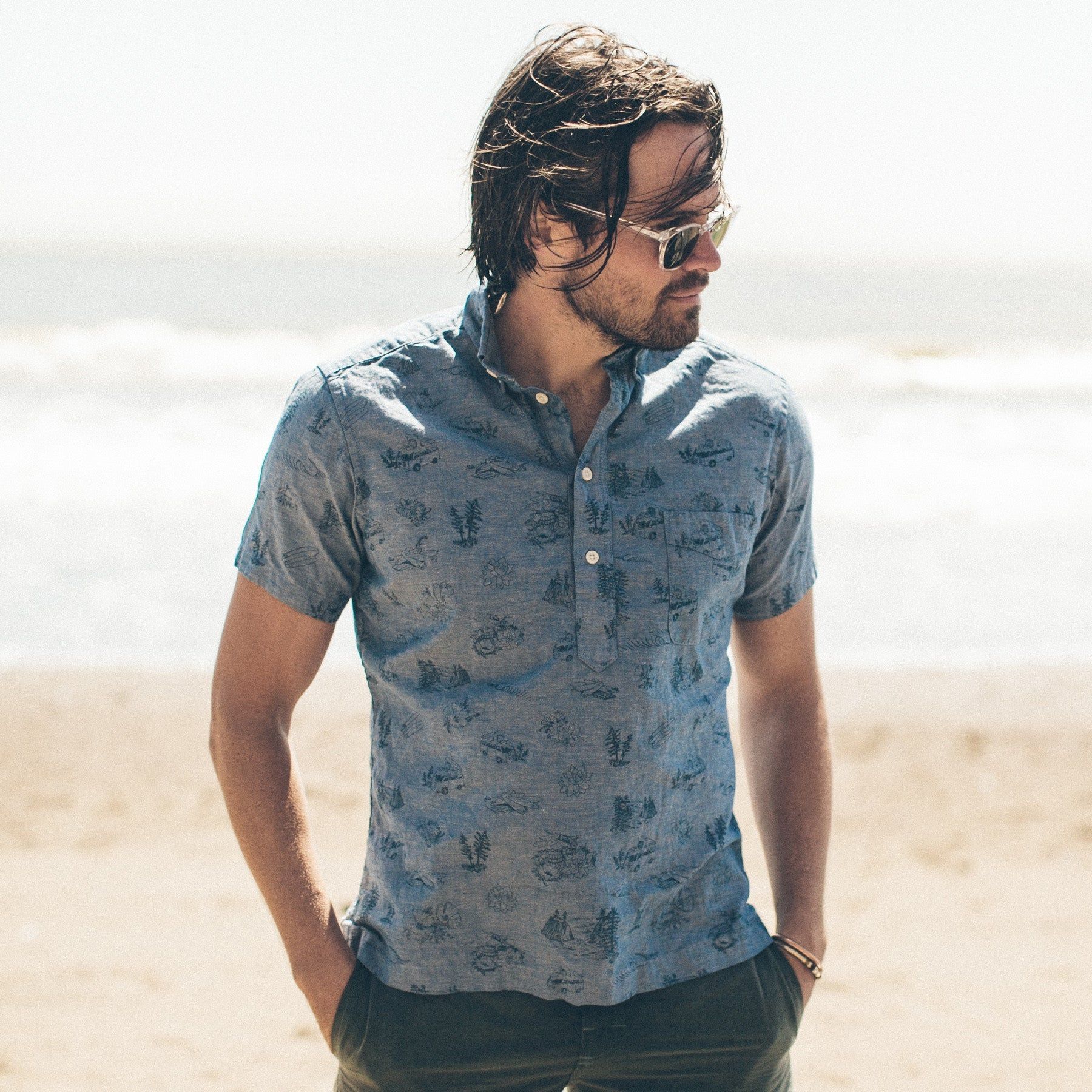 - 7-oz. Slubby Japanese Chambray, 85% Cotton & 15% Flax cotton.