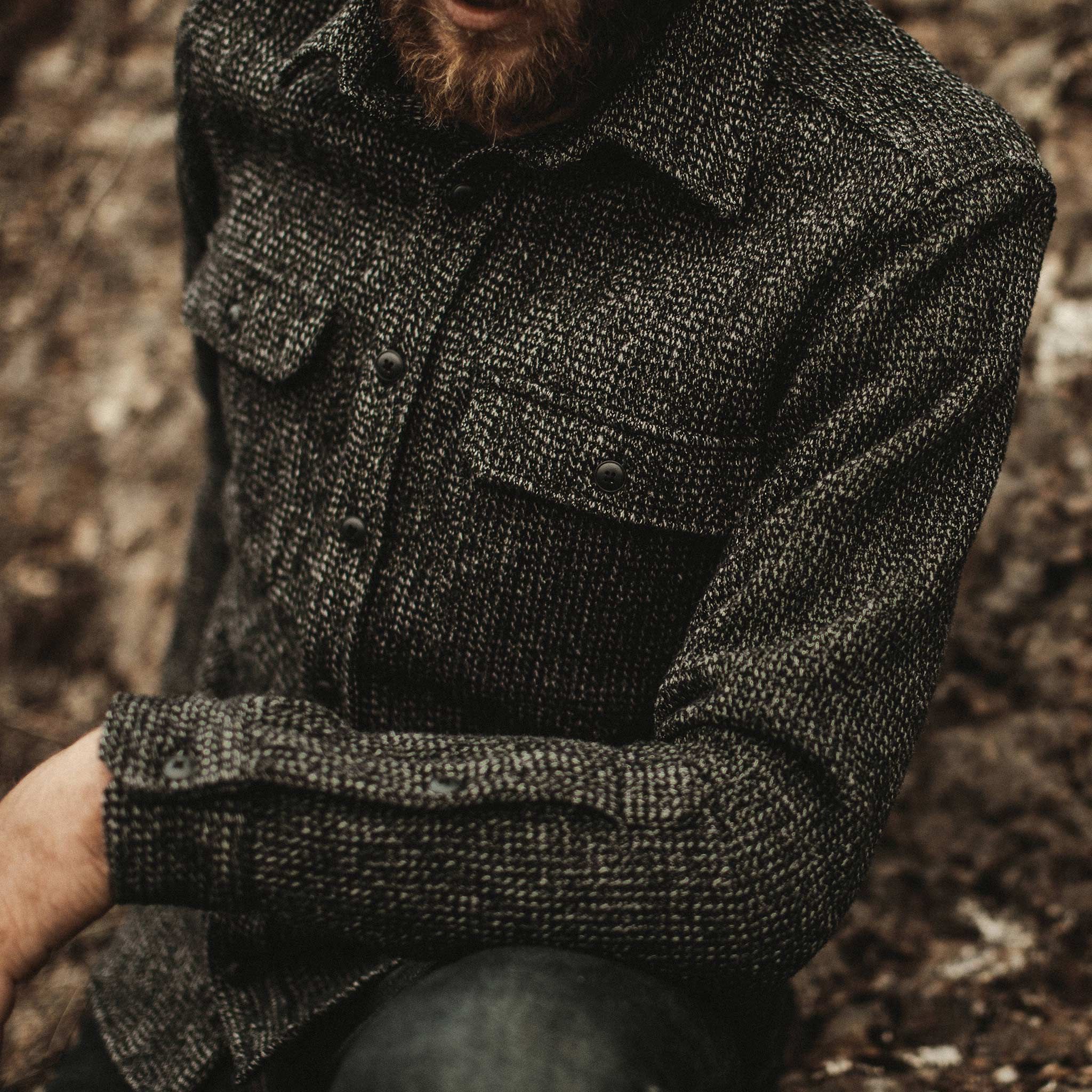 The Summit Shirt in Heather Charcoal Waffle from Taylor Stitch.