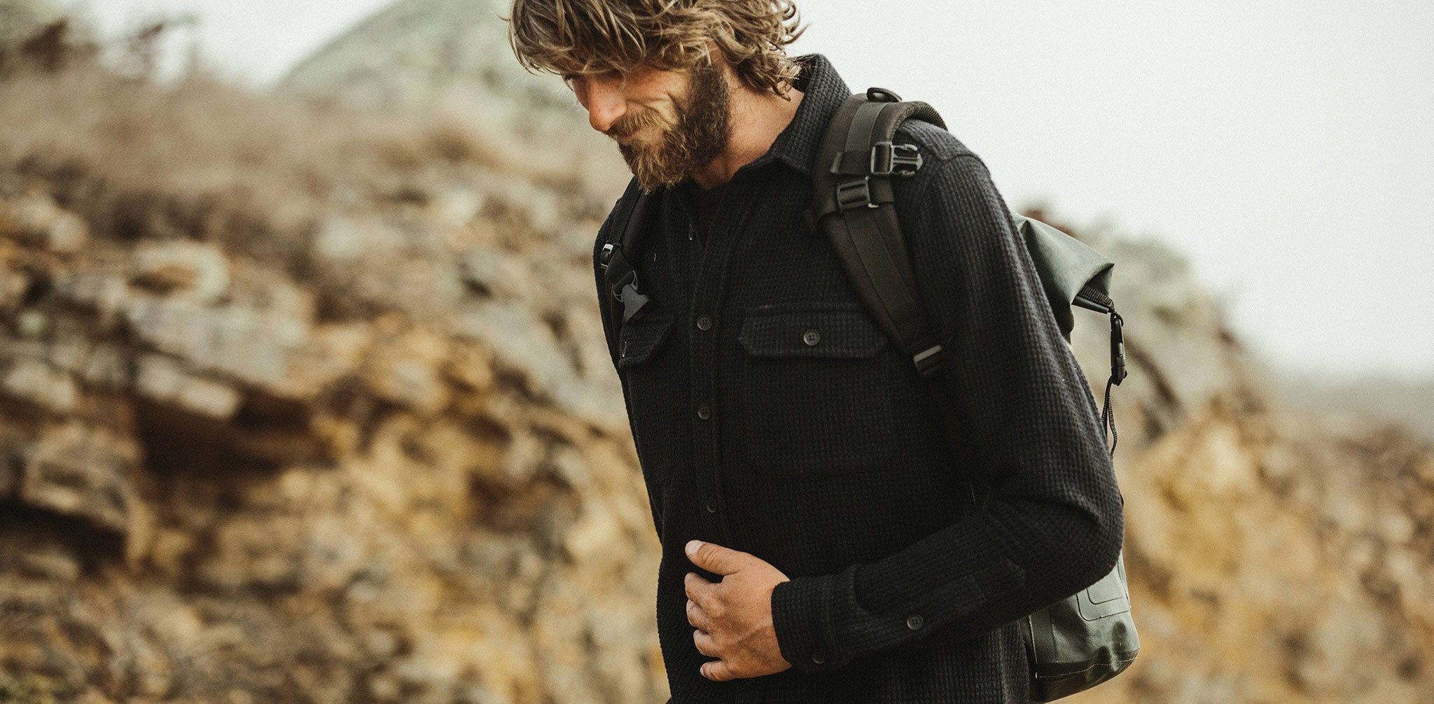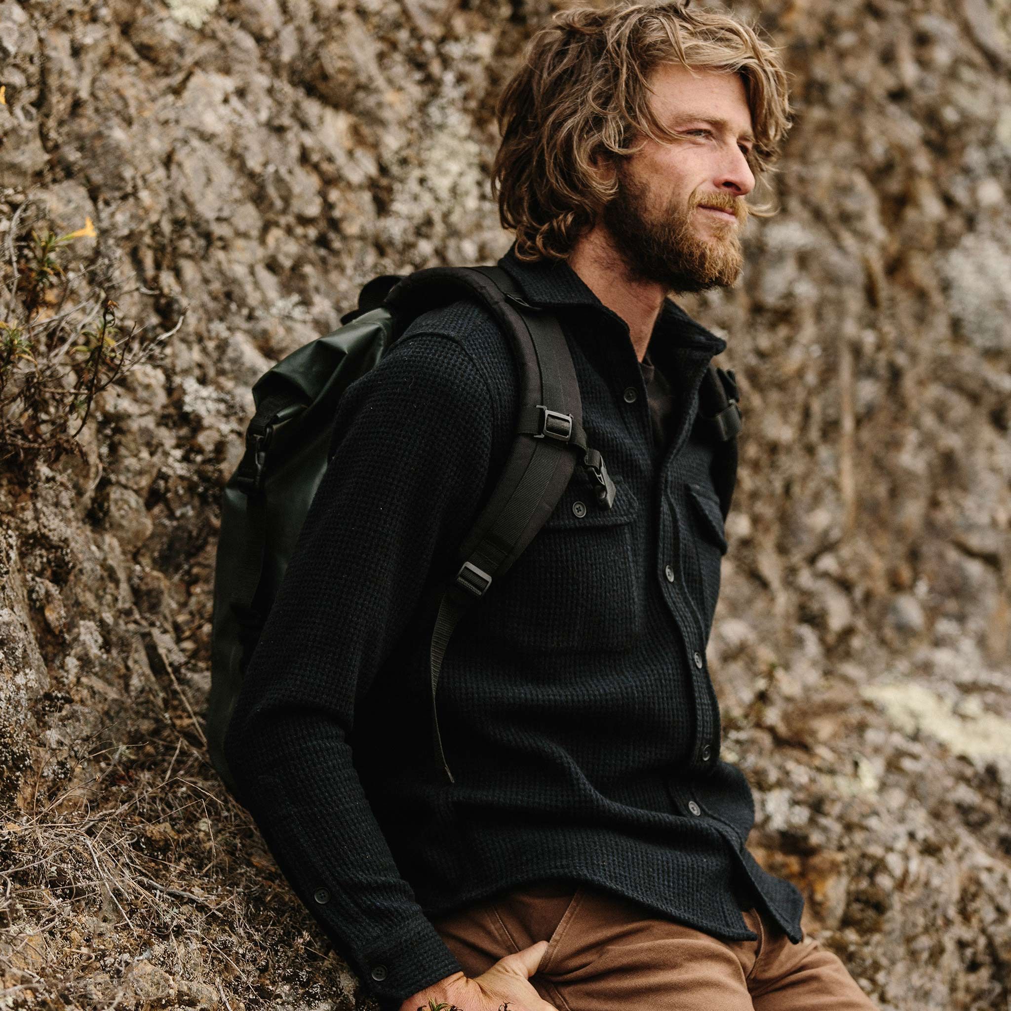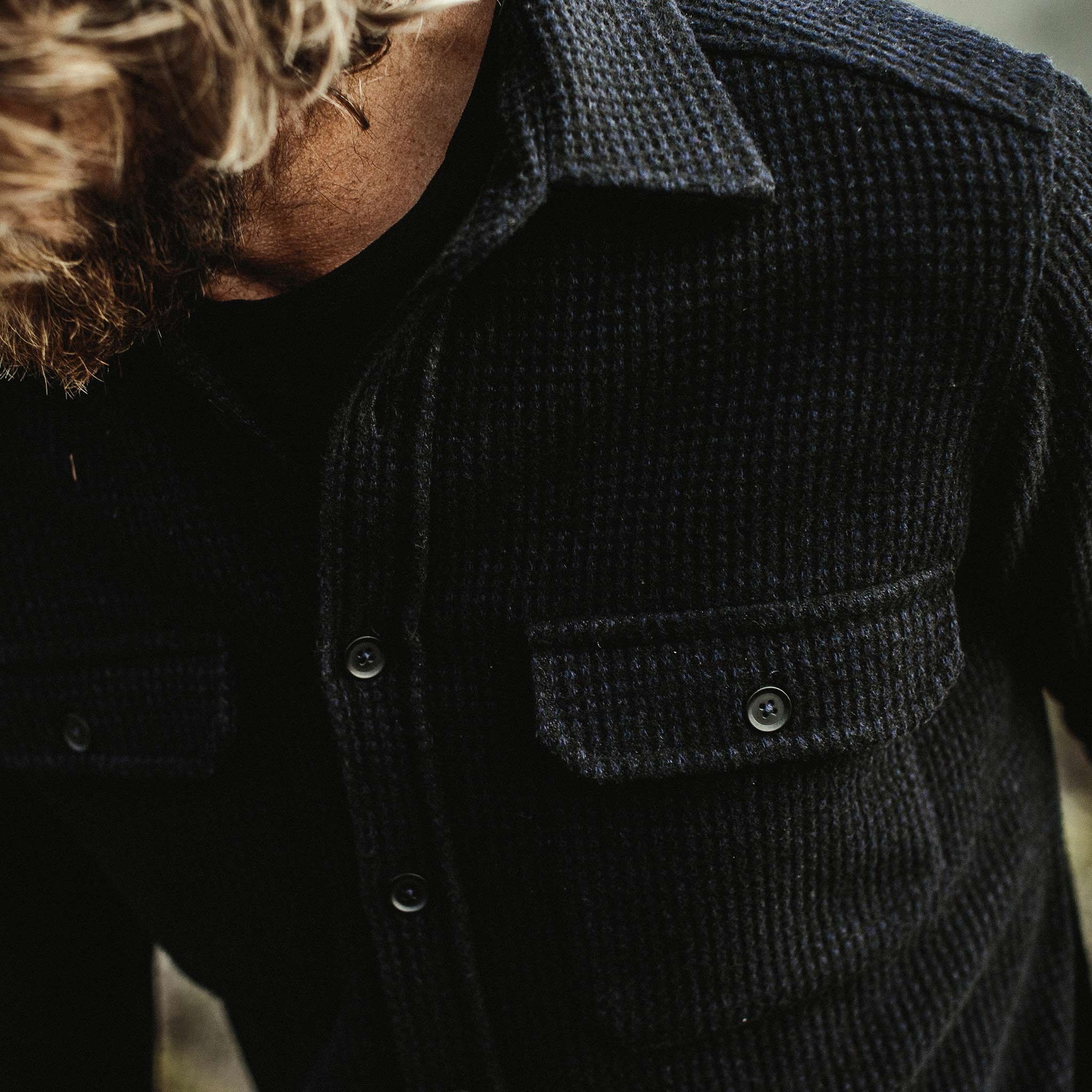 The Summit Shirt in Heather Navy Waffle from Taylor Stitch.